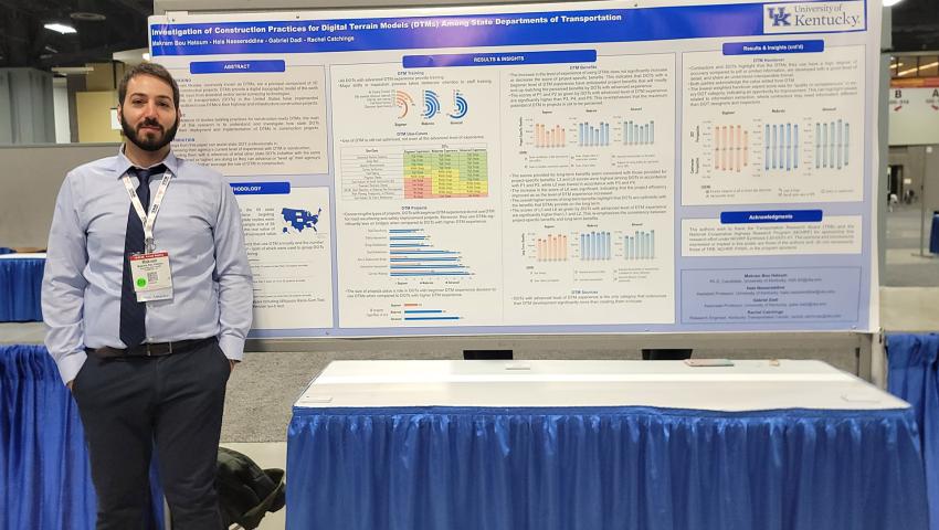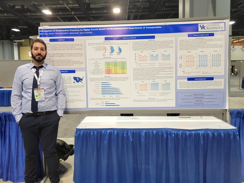 Research presented in the poster was completed under the supervision of Gabriel Dadi, associate professor and W.L. Raymond & R.E. Shaver Chair of Construction Engineering and Management; Hala Nassereddine, Assistant Professor in Construction Engineering and Project Management and Rachel Catchings, research engineer in the Kentucky Transportation Center.