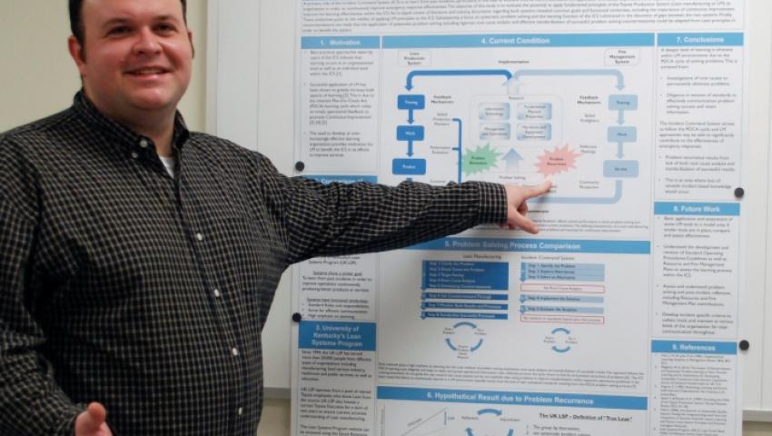 Fugate worked with his UK advisors Kozo Saito, director of the Institute of Research for Technology Development (IR4TD); Nelson Akafuah, assistant research professor of mechanical engineering; and Abbot Maginnis, academic program coordinator in the Lean Systems Program; alongside U.S. Department of Agriculture researchers Mark A. Finney and Jason Forthofer, to produce a paper for the international conference titled, "A Focused Analysis on Lean Fire Management Systems." The paper proposes the application of lean manufacturing techniques to fire services, particularly root cause analysis and systematic problem-solving to post-incident reflection meetings for facilitation of continuous improvement.