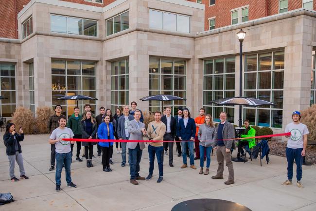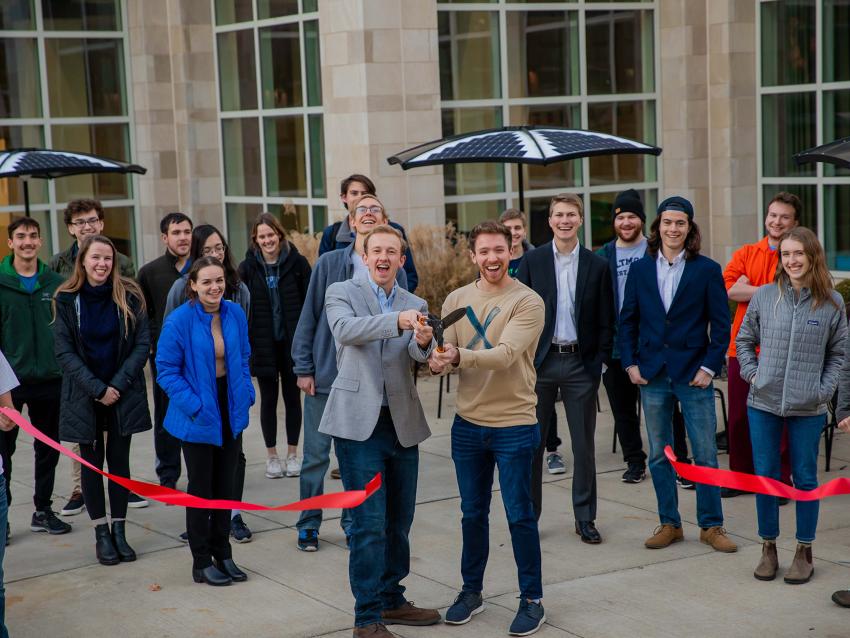 After two years of planning, designing and securing support from stakeholders, the Enerfusion Solar-Dok umbrellas were unveiled at a ribbon cutting event at the Lewis Honors College on November 30, 2022.