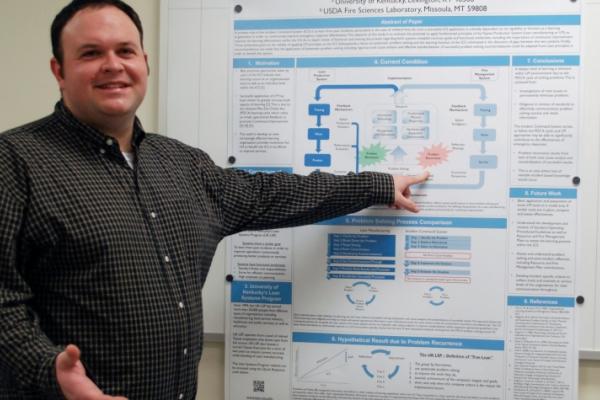 Jeremiah Fugate, recent graduate of the mechanical engineering master's program at the University of Kentucky, won first prize in the research poster session at the 7th International Conference on Forest Fire Research in Coimbra, Portugal, held Nov. 17-21.